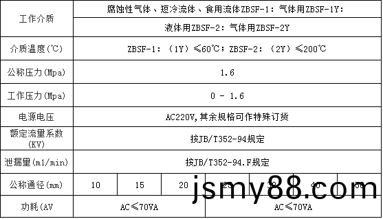 ZBSF全(quan)不(bu)銹(xiu)鋼電(dian)磁(ci)閥(fa)性(xing)能參數(shù):