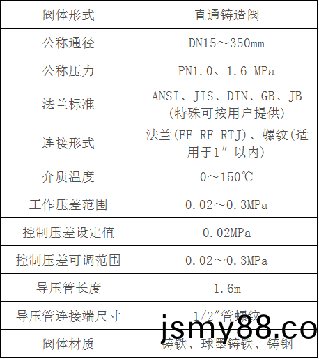 ?ZYC自(zi)力式壓差(cha)控制(zhi)閥(fa)主(zhu)要(yao)技(ji)術參數(shu):