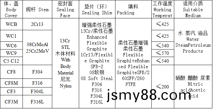 5、閥體、閥瓣(ban)、閥桿(gan)、填料(liao)、緊固(gu)件(jian)的(de)材(cai)料(liao)可按實(shí)際工況(kuang)要(yao)求合理(li)選(xuan)配(pei),以適(shi)用(yong)于(yu)多(duo)種(zhong)不同(tong)的工況環(huán)境(jing)。