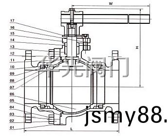 Q41F-10/16/25C鑄(zhu)鋼(gang)手動球(qiu)閥結構(gou)圖(tu):