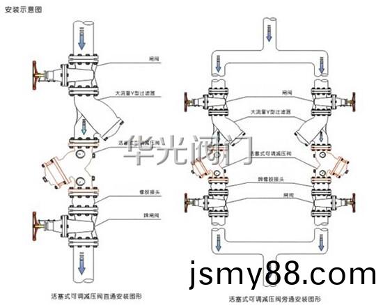YQ98001-10/16Q過(guò)(guo)濾(lv)活塞(sai)式(shi)可(ke)調(diào)(diao)減壓閥(fa)安裝示意(yi)圖(tu):