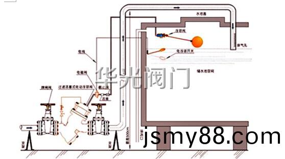 YQ98005-10/16Q過(guo)濾活塞(sai)式(shi)電(dian)動浮(fu)球(qiu)閥安(an)裝示意(yi)圖: