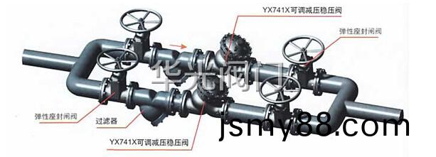 YX741X-25C可調(diào)(diao)式減(jian)壓穩(wěn)(wen)壓(ya)閥(fa)安裝(zhuang)示(shi)意圖: