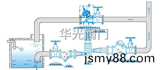 AX742X安(an)全泄(xie)壓(ya)持(chi)壓(ya)閥也叫隔(ge)膜(mo)式(shi)安(an)全(quan)泄(xie)壓(ya)持(chi)壓閥,AX742X安(an)全(quan)泄壓(ya)持(chi)壓閥安(an)裝(zhuang)在高層(ceng)建(jian)筑、消(xiao)防(fang)給(gei)水系(xi)統(tong)以及其(qi)它給水(shui)系統的(de)管道上,當給水管路中(zhong)壓力(li)超(chao)過泄壓(ya)閥(fa)設(she)定壓力時(shi),AX742X安全(quan)泄(xie)壓/持(chi)壓閥(fa)自(zi)動(dong)開啟快(kuai)速泄(xie)壓,保護(hu)管(guan)線(xian)的安全(quan),也(ye)可(ke)作(zuo)持壓閥(fa)用,保障(zhang)主閥上(shang)游(you)的供(gong)水(shui)壓(ya)力(li)。AX742X安(an)全(quan)泄壓安裝(zhuang)在水(shui)泵(beng)出(chu)口(kou)端,順序實(shi)現緩慢(man)開啟、全開(kai)、速(su)閉(bi)、緩(huan)閉等功能。本產品用于高(gao)層(ceng)建筑給水系(xi)統(tong)和(he)其(qi)它(ta)給(gei)水系統的水泵(beng)出(chu)口管路(lu)上(shang),防(fang)止(zhi)和減弱水泵(beng)啟(qi)閉時管線的(de)水(shui)錘(chui)水擊,防(fang)止水倒流(liu)保護水(shui)泵,維(wei)護管路安(an)全。