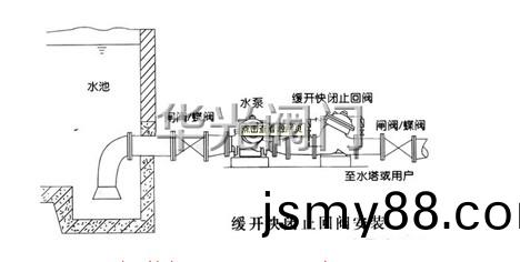 DY30BX緩(huan)開快(kuai)閉止(zhi)回(hui)閥(fa)安(an)裝(zhuang)示(shi)意(yi)圖: