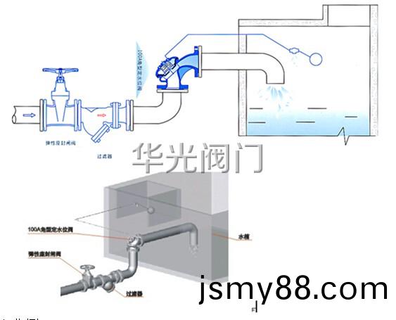 100A角(jiao)型(xing)定水(shui)位(wei)閥(fa)典型安裝(zhuang)示意圖:?