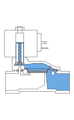 通(tong)電時,電(dian)磁力把(ba)先(xian)導(dao)孔(kong)打開,上腔(qiang)室壓力迅速下(xia)降,在關 閉(bi)件周(zhou)圍(wei)形成(cheng)上(shang)低下高的(de)壓差(cha),流(liu)體(ti)壓力(li)推(tui)動(dong)關閉件向上(shang)移(yi)動(dong),閥(fa)門(men)打(da)開;斷電時,彈(dan)簧(huang)力(li)把先導(dao)孔(kong)關(guan)閉,入口壓(ya)力(li)通(tong)過(guo)旁(pang)通(tong)孔(kong)迅(xun)速(su)腔室在關閥件(jian)周圍形(xing)成(cheng)下(xia)低(di)上高(gao)的(de)壓差,流體(ti)壓(ya)力推(tui)動關閉件向(xiang)下(xia)移(yi)動(dong),關閉閥門(men)。